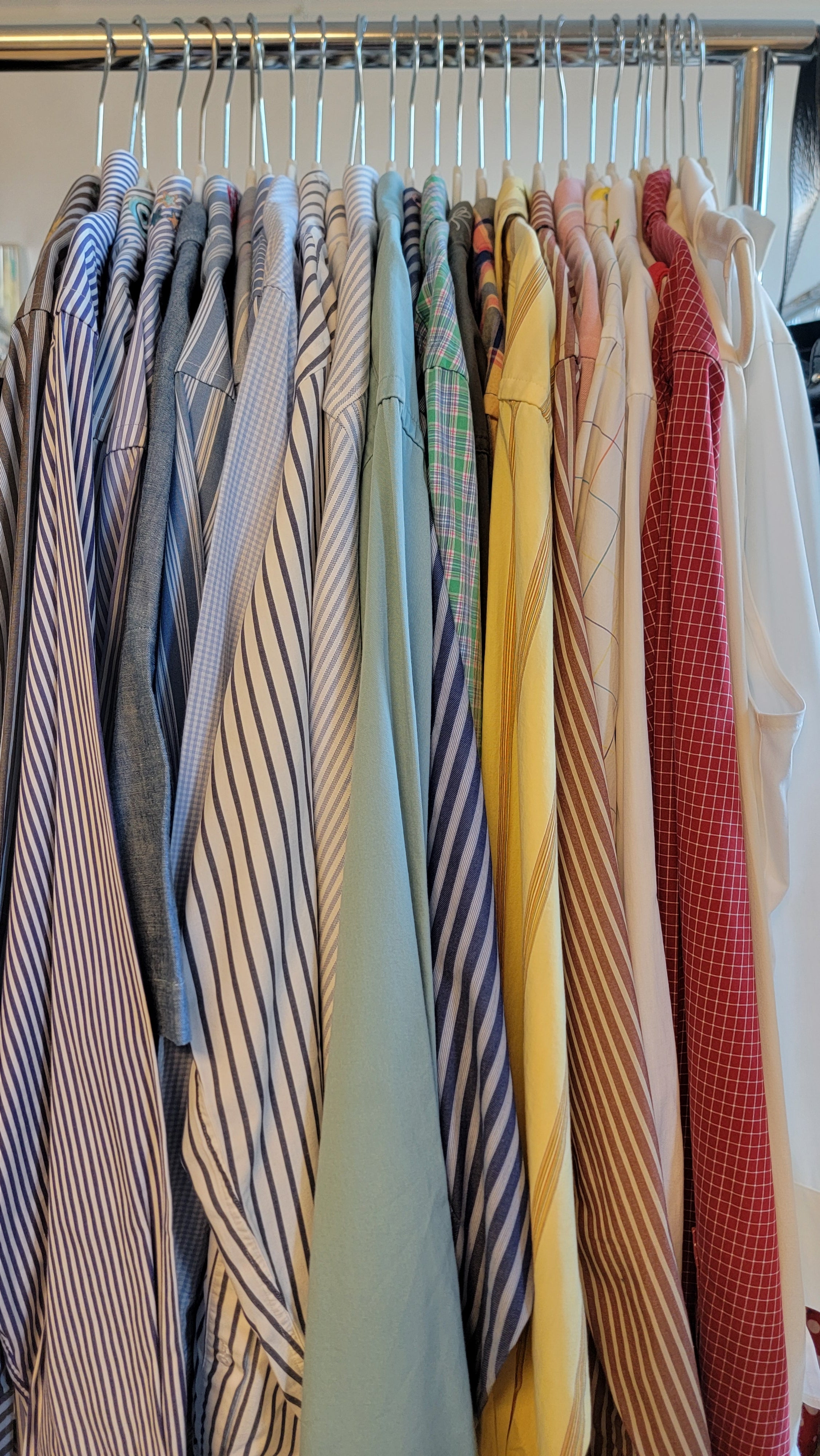 00s "Art Scene" Embroidered Jos A Bank Light Blue Stripes Button Down Shirt