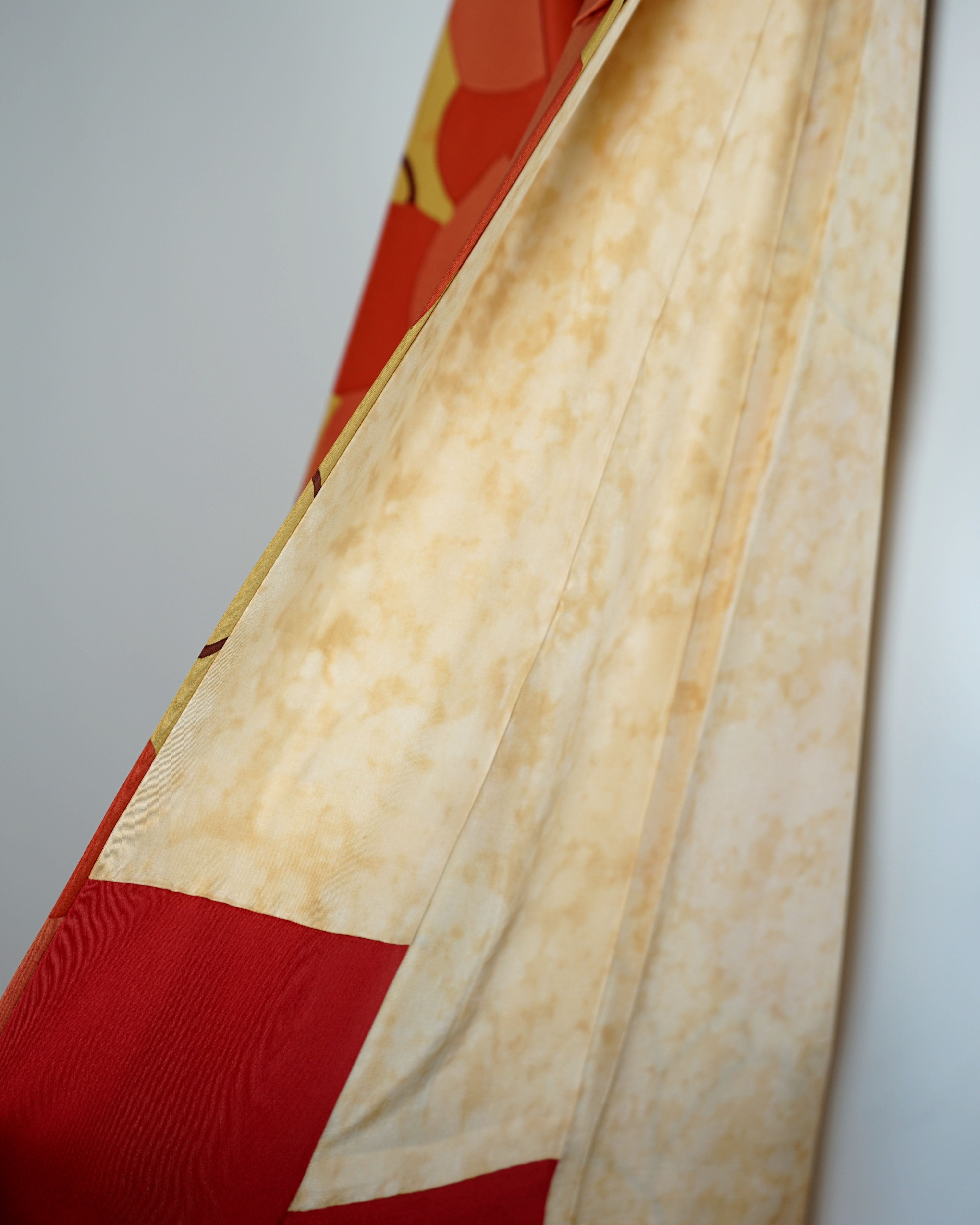 1970s Susohiki Kimono in Sunbaked Orange Marigold Leaves