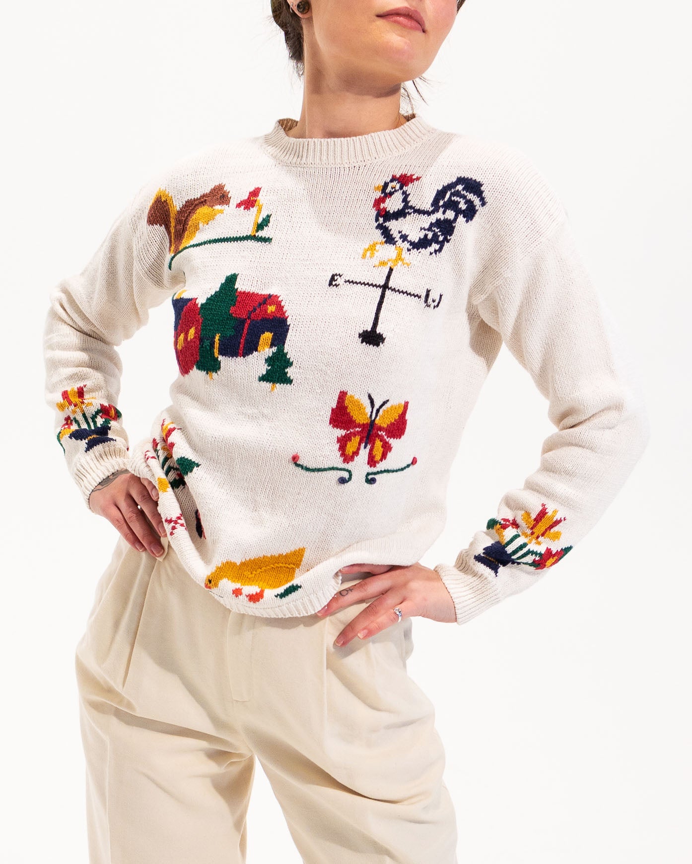 00s "Mushrooms of the Forest" Embroidered Off White Pleated Front Long Sleeved Shirt