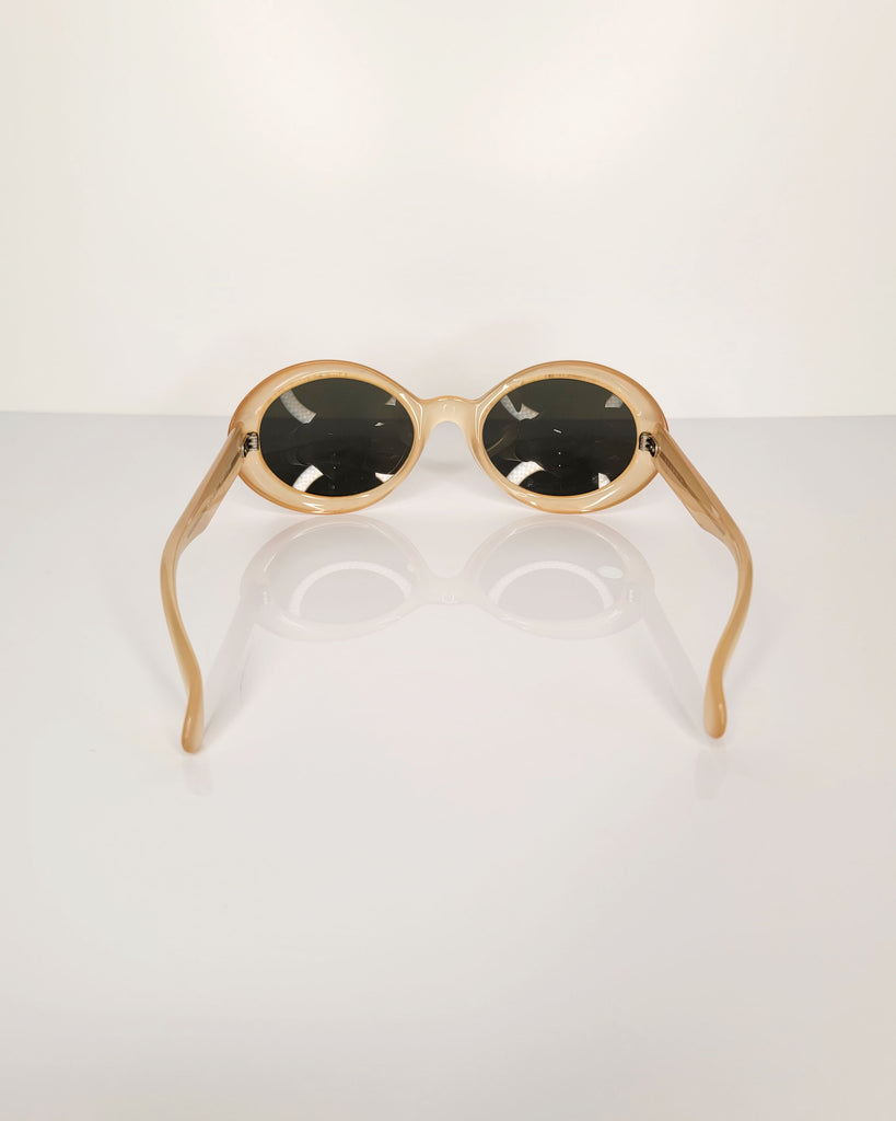 Vintage Ellen Tracy rounded retro sunglasses in a glossy earthy shade with dark contrasting lenses.